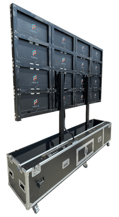 Meet our latest cutting-edge portable LED video wall system, designed for ease, simplicity, super fast deployment, and efficiency. The Motion takes innovation even further than our Presta series, by coming fully assembled. No manual assembly required! Simply take off the sides of the road case covers, turn on the power, plug in your HDMI source, raise the display up with the push of a button, and you are ready to go!