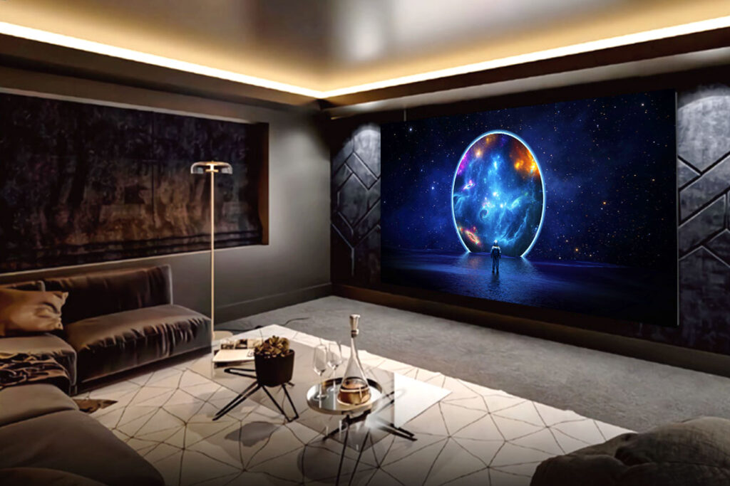 Some displays show you the world, ours takes you there! This isn’t just a screen, it’s your personal window and gateway to any destination imaginable. A portal to Paris at dusk, or to a crowd at a sold-out stadium, or to the silence of deep space. Designed for luxury residences, this is the most immersive LED video wall ever built for the home. With our industry leading Flip Chip COB XM chipset, every pixel radiates clarity, color, and contrast so profound, it suspends disbelief. Welcome to the future of residential home cinema. Welcome to “The Portal to the World”.